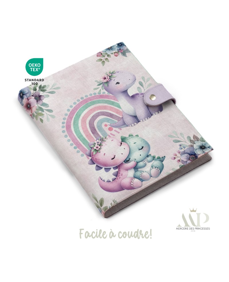 Panneau de couture Protège Carnet de Santé - Motif Bébés Dinosaures Rose - Animaux DIY - Tissu Patron pour création naissance
