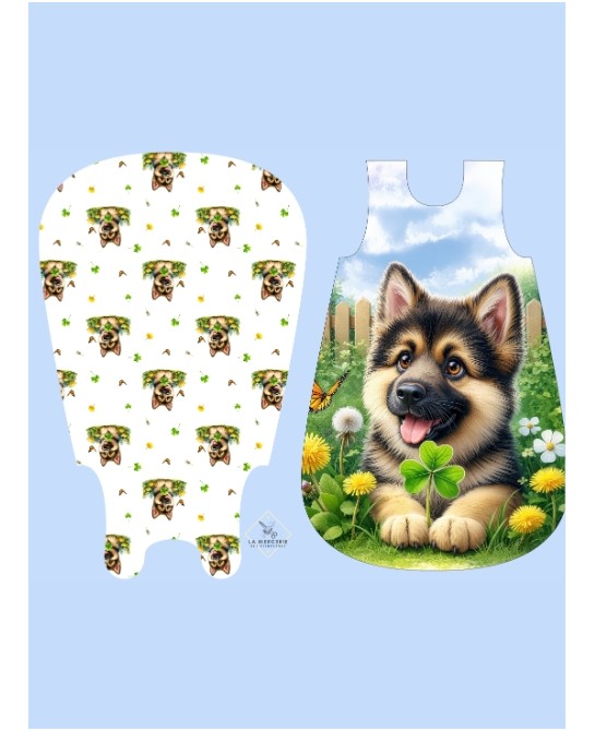 Créez une gigoteuse unique et pleine de douceur avec notre panneau Petit berger, spécialement conçu pour la couture DIY. Ce motif aquarelle délicat met en scène de tendres petit chiot berger allemand aux expressions attendrissantes créant une atmosphère calme et rassurante, idéale pour le sommeil de bébé.