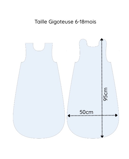 - Taille 6-18 mois : 95 cm (hauteur) x 50 cm (largeur)