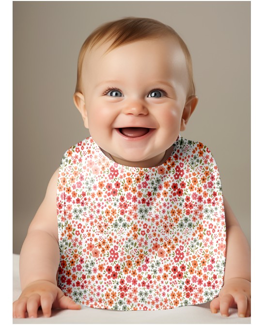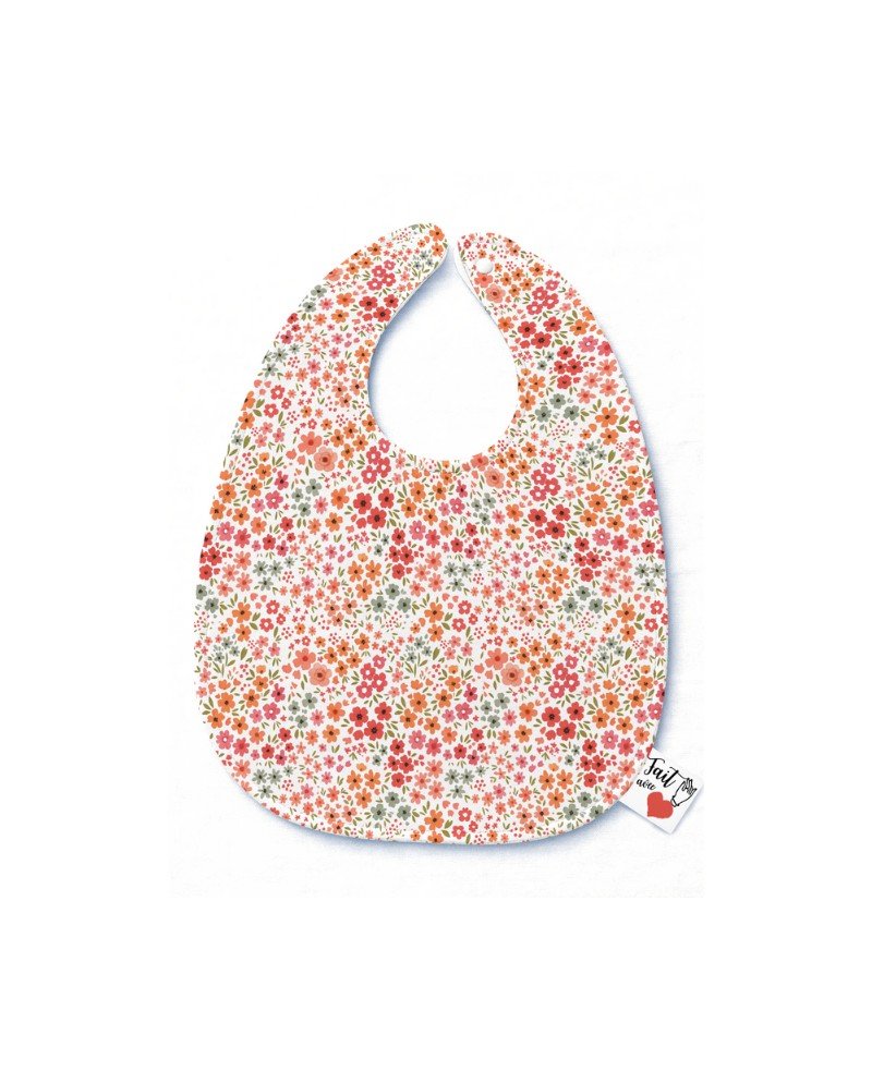 Panneau Bavoir Petites Fleurs Corail – pour Bavoir Bébé 3 à 12 mois – Tissu coton Oeko-Tex® a réaliser soi-même