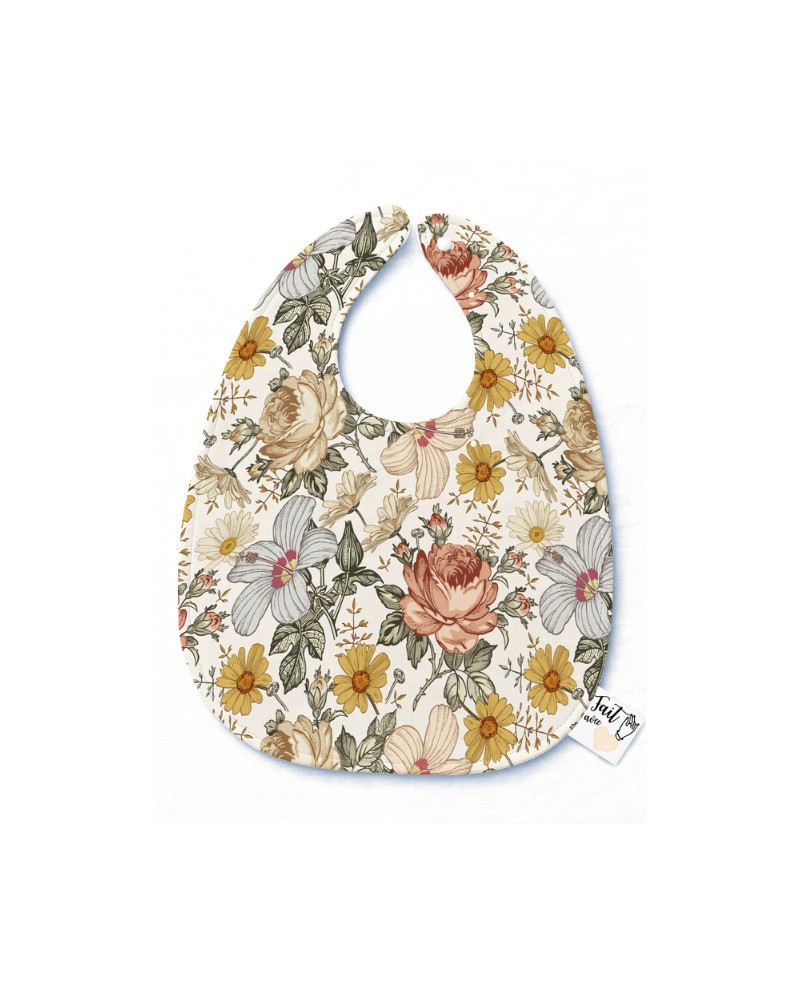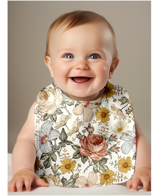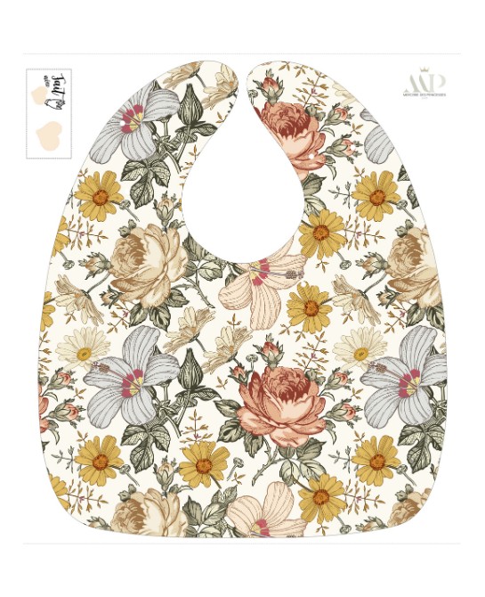 Panneau Bavoir Fleurs Vintage – pour Bavoir Bébé 3 à 12 mois – Tissu coton Oeko-Tex® a réaliser soi-même