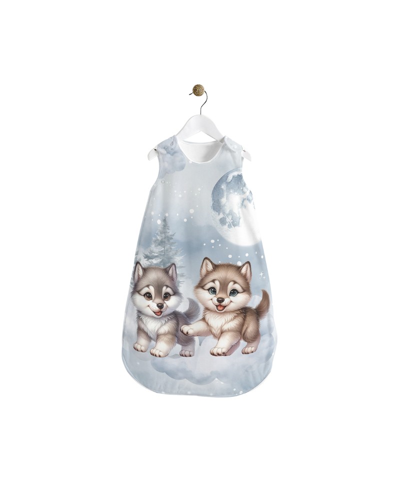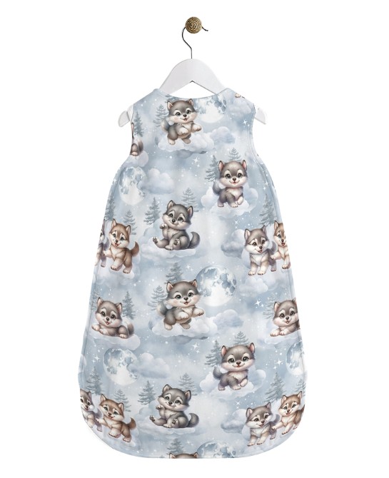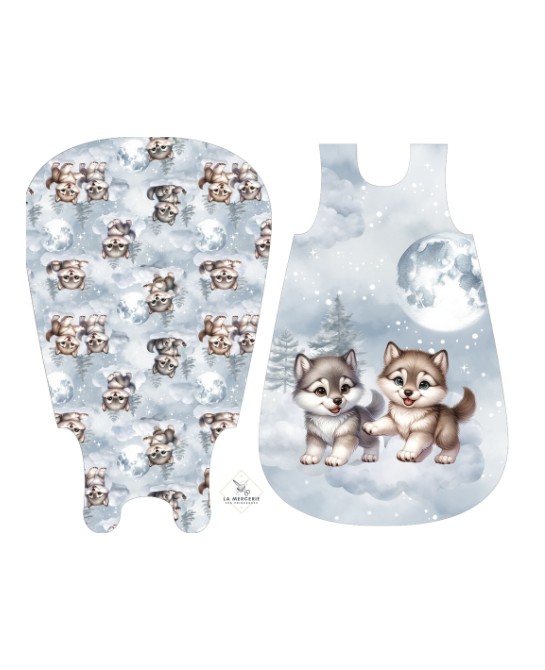 Créez une gigoteuse unique et pleine de douceur avec notre panneau Petit Loup, spécialement conçu pour la couture DIY. Ce motif aquarelle délicat met en scène de tendres petits loups aux expressions attendrissantes, évoluant sur des nuages sous une lune apaisante. Les teintes douces de gris perle, bleu ciel et blanc créent une atmosphère calme et rassurante, idéale pour le sommeil de bébé.