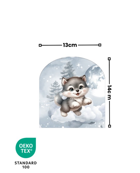 Panneau à coudre pour gants de toilette enfant, illustré d'adorables louveteaux au style aquarelle doux et poétique.