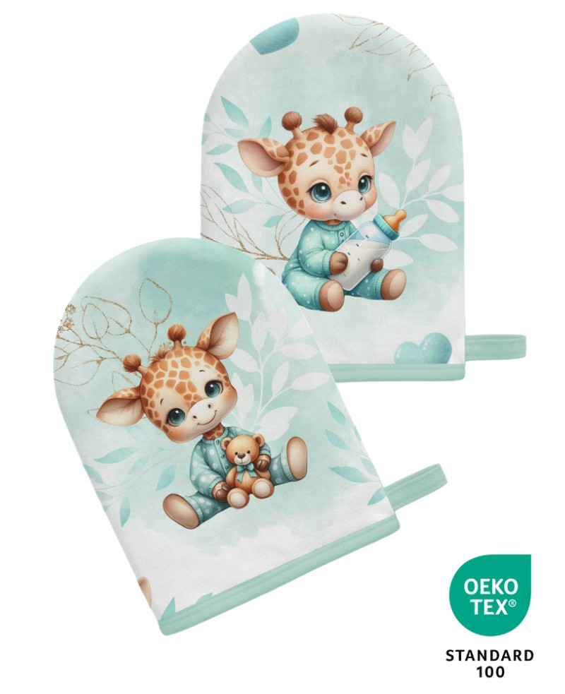 Coupon pour 5 Gants de toilette pour bébé à réaliser soi-même Bébé Girafe Vert D'eau Coton Oeko-Tex