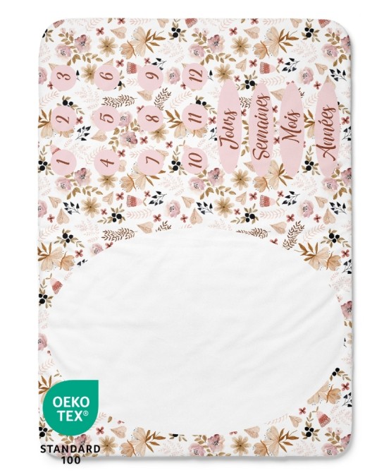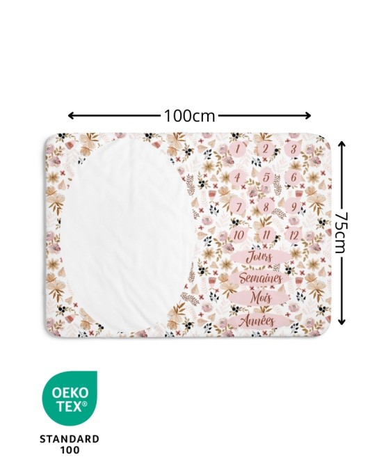 Coupon tissu fleurs sauvages roses panneaux pour confection d'un tapis étape, tapis photo, 75x100cm 100% coton Oeko-Tex