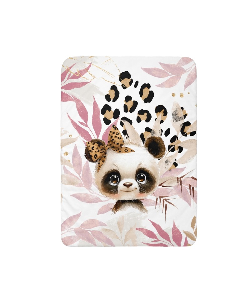 Succombez au charme tendre et sauvage de la couverture Panda Léopard, une création douce et poétique qui fera fondre petits et grands. Le motif aquarelle représente un adorable panda aux yeux pétillants, orné d’un nœud léopard et entouré de feuillages bohèmes dans des tons rosés et dorés. Une illustration délicate et enfantine, idéale pour apporter chaleur et poésie à la chambre de votre enfant.