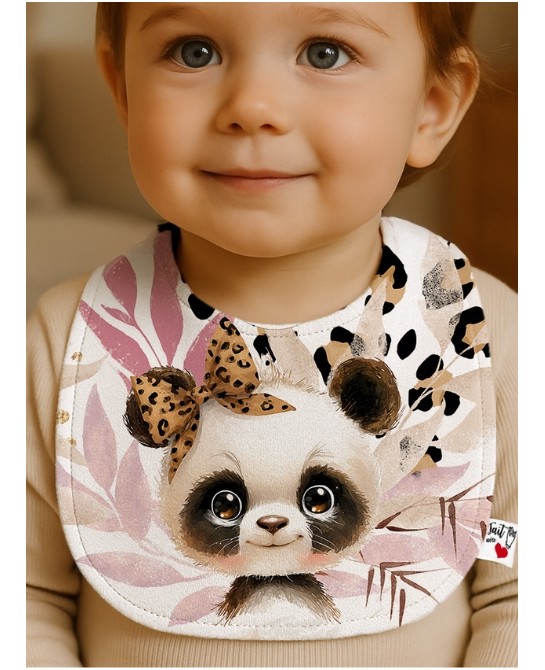 Panneau Bavoir Bébé Panda leopard – pour Bavoir Bébé 3 à 12 mois – Tissu coton Oeko-Tex® a réaliser soi-même
