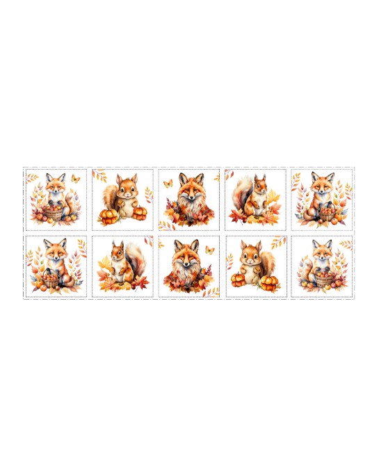 Panneau Lingettes tissu Renard et Ecureuil D'Automne – 10 lingettes lavables réutilisables bébé – coton Oeko-Tex couture facile
