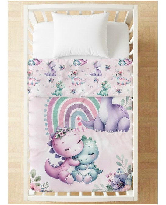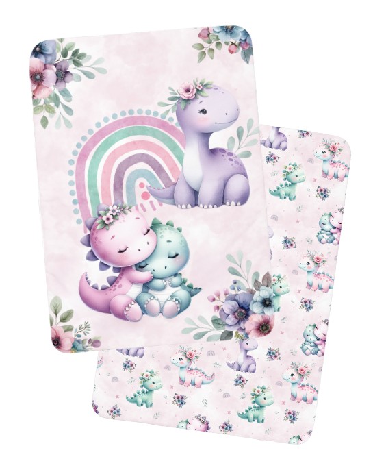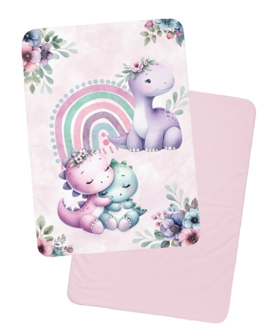 Coupon couverture Bébés Dinosaures Rose – Oeko-Tex – 75x100, 100x150 ou 150x200 cm – couture facile, cadeau naissance
