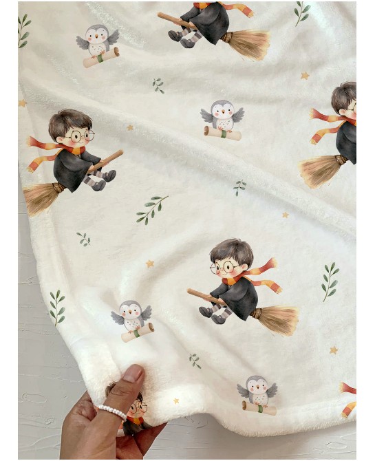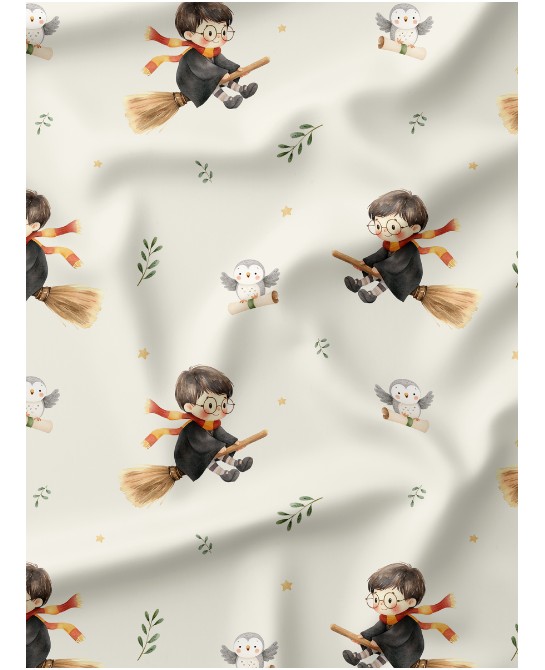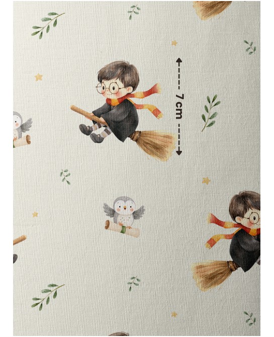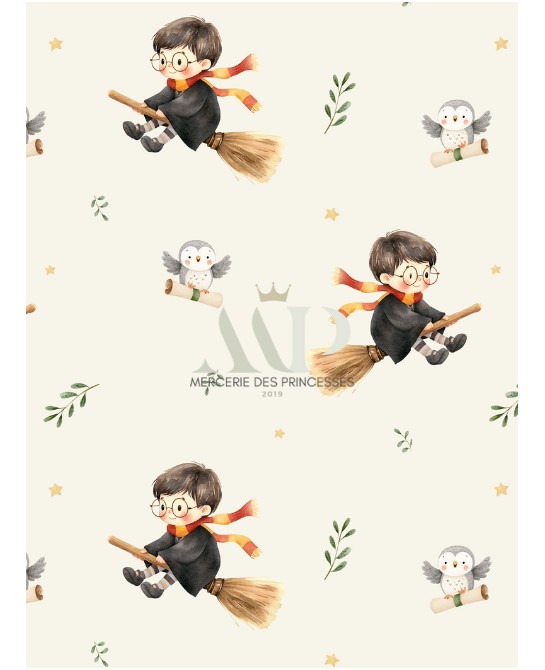 Ce tissu met en scène un adorable petit sorcier en pleine aventure magique. Entre son balai, son écharpe virevoltante et sa petite chouette messagère, l’ensemble respire la douceur et l’univers enchanté de l’enfance. Parfait pour des créations pleines de fantaisie, il plaira aux passionnées de couture qui aiment ajouter une touche de magie à leurs projets.
