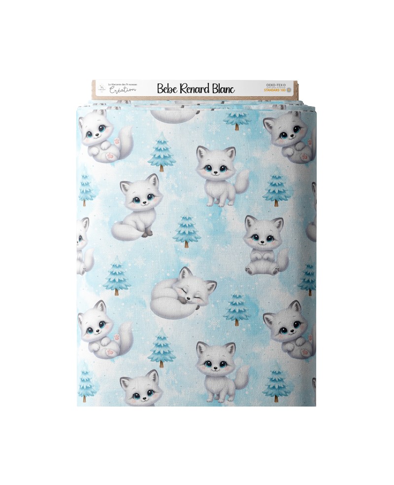 Certifié Oeko-Tex Standard 100, le tissu Bébé Renard Blanc allie douceur, qualité et charme givré — parfait pour des créations qui feront fondre petits et grands.