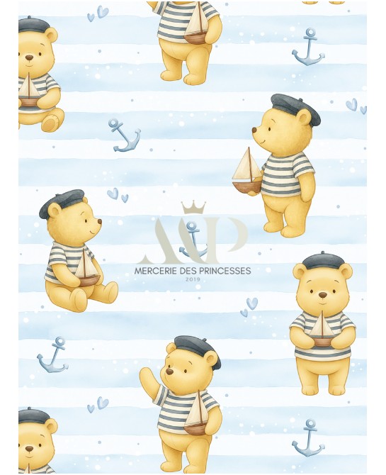 Tissu coton imprimé pour enfants Ours Marin - Certifié Oeko-Tex®