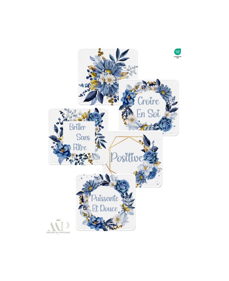 Panneau Lingettes Beauté Éco-Chic Fleurs Bleus – 10 lingettes lavables réutilisables – coton Oeko-Tex couture facile
