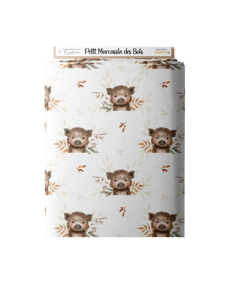Tissu coton imprimé pour enfants Petit Marcassin Des Bois - Certifié Oeko-Tex®
