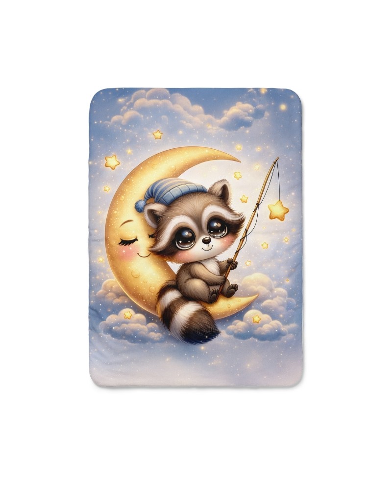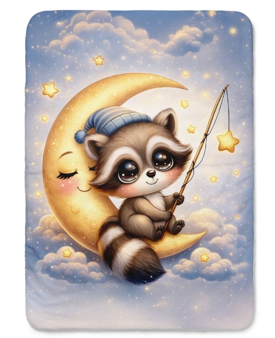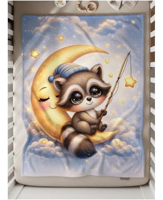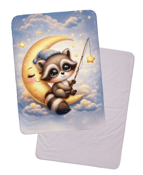 Coupon couverture Raton Laveur dans la lune – Oeko-Tex – 75x100, 100x150 ou 150x200 cm – couture facile, cadeau naissance