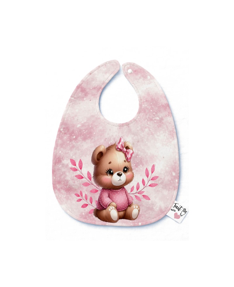 Panneau Bavoir Ourson Mignon Rose – pour Bavoir Bébé 3 à 12 mois – Tissu coton Oeko-Tex® a réaliser soi-même