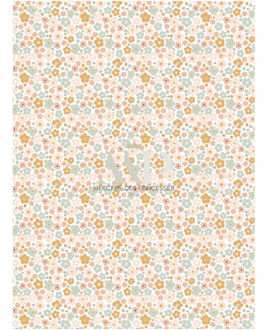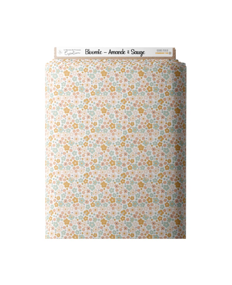 Tissu coton imprimé Fleurs Bloomie – Amande & Sauge - Certifié Oeko-Tex®