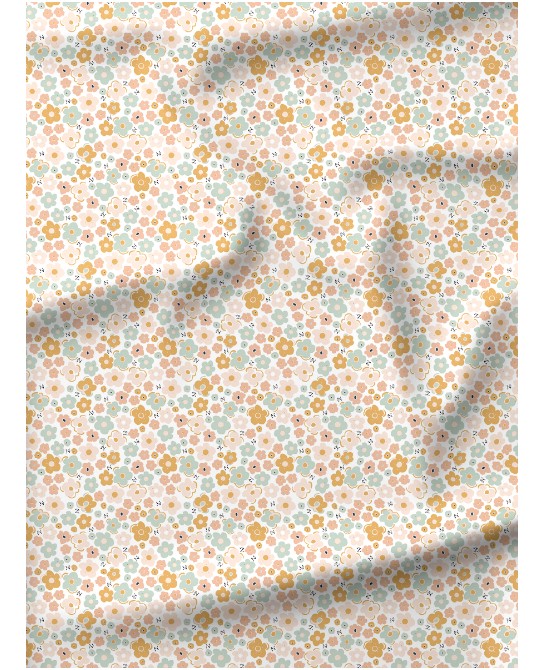 Le motif Bloomie – Amande & Sauge décline l’esprit floral iconique dans une version douce, naturelle et intemporelle. Sur un fond clair lumineux, de petites fleurs stylisées aux teintes amande, beige poudré, vert sauge et moutarde doux se répartissent harmonieusement, ponctuées de détails discrets pour un rendu équilibré et apaisant.