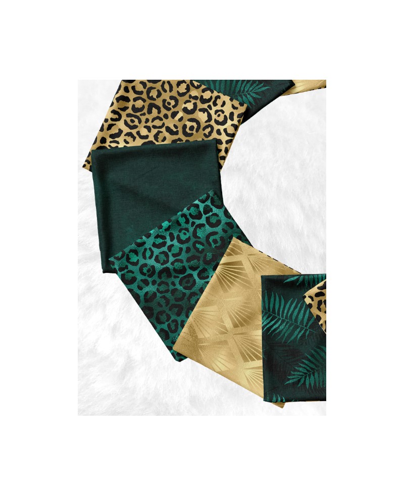 Panneau de tissu en coton premium certifié Oeko-Tex® Standard 100, spécialement conçu pour la couture de lingettes lavables. Il comprend 10 carrés de 12 × 12 cm aux motifs léopard chic vert et or, élégants et intemporels.