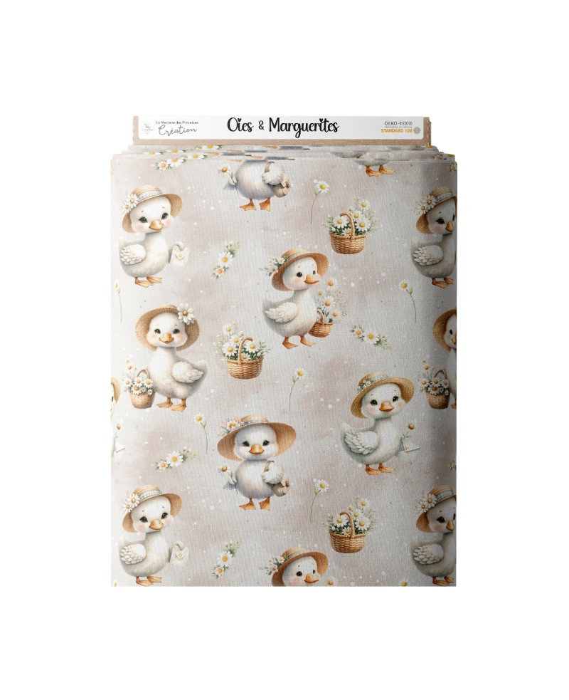 Tissu coton imprimé pour enfants Oies & Marguerites - Certifié Oeko-Tex®