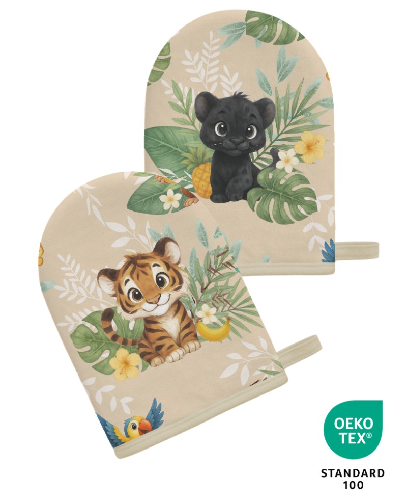 Panneau à coudre pour gants de toilette enfant, illustré d'adorables animaux de la jungle au style aquarelle doux et poétique.