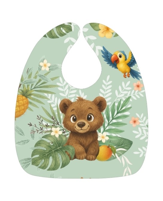 Panneau Bavoir Ourson livre de la jungle – pour Bavoir Bébé 3 à 12 mois – Tissu coton Oeko-Tex® a réaliser soi-même