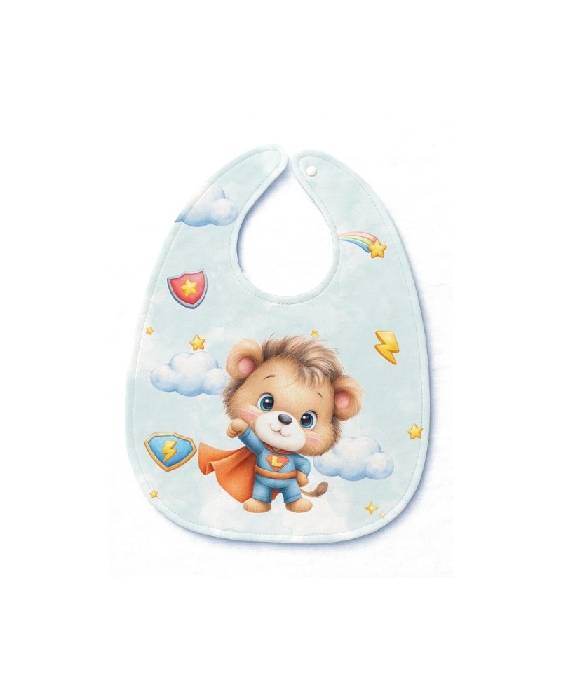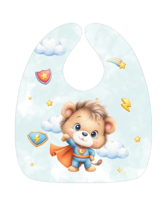 Panneau Bavoir Lion SuperHéros – pour Bavoir Bébé 3 à 12 mois – Tissu coton Oeko-Tex® a réaliser soi-même
