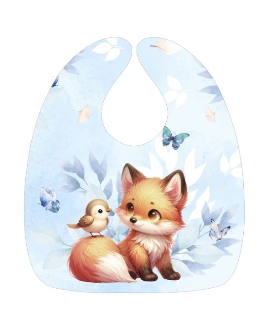 Panneau Bavoir petit renard et oiseau – pour Bavoir Bébé 3 à 12 mois – Tissu coton Oeko-Tex® a réaliser soi-même