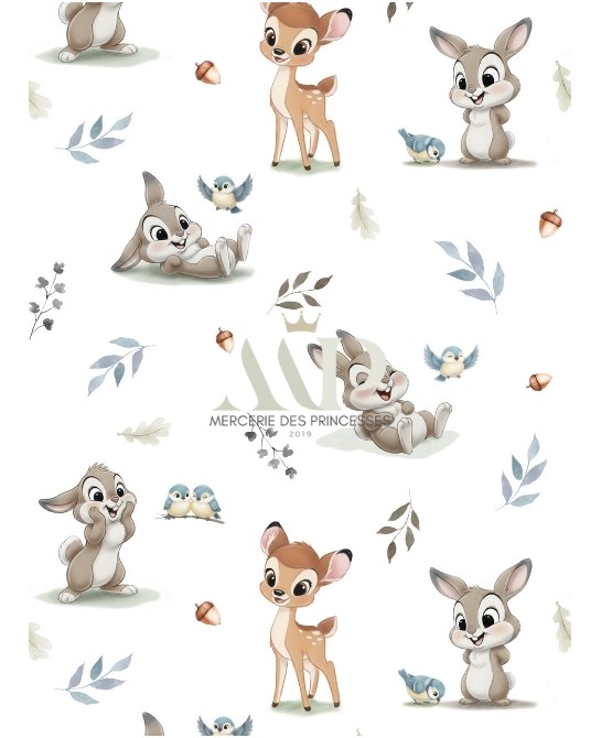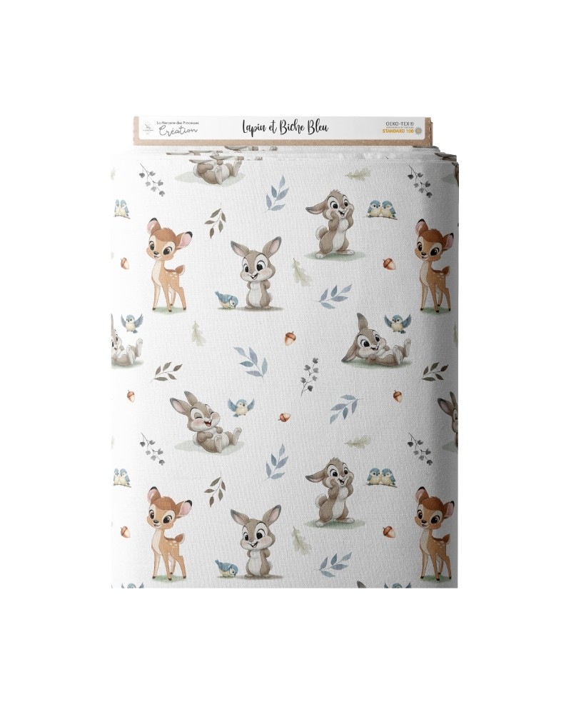 Tissu coton imprimé pour enfants Lapin et Biche Bleu- Certifié Oeko-Tex®