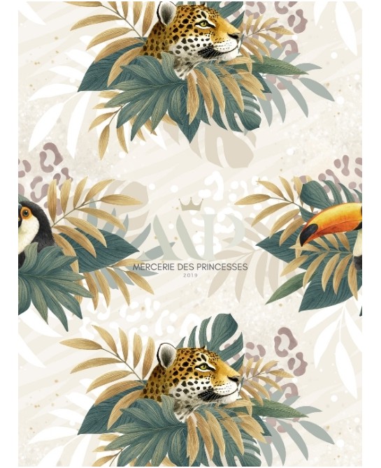 Tissu coton imprimé pour enfants Leopard et Toucan - Certifié Oeko-Tex®
