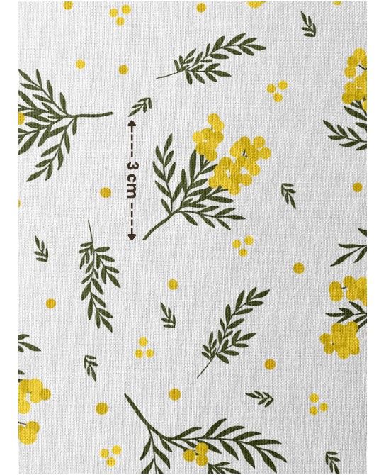 Créez des projets de couture élégants et intemporels avec ce tissu “Fleurs Bloomie – Mimosa” en coton certifié Oeko-Tex.