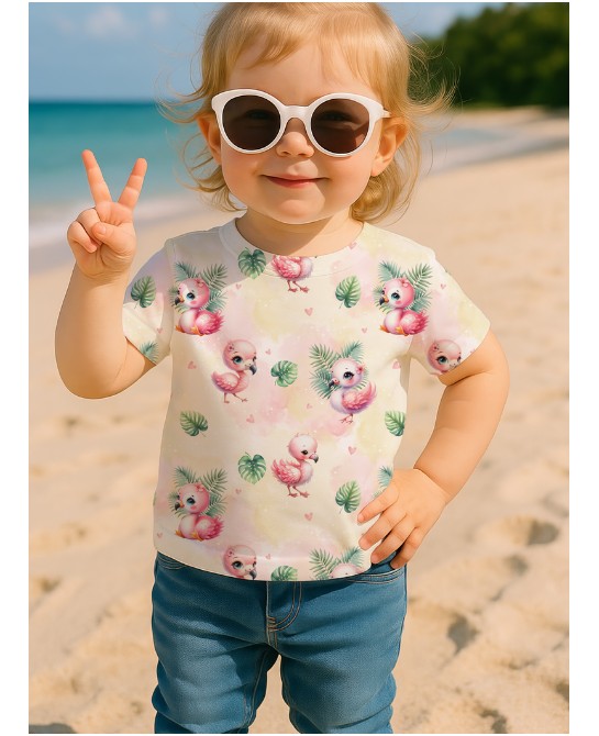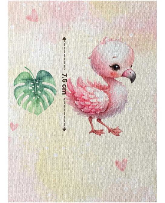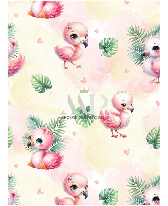 Le tissu « Flamingo » invite à une promenade tendre et joyeuse dans un univers pastel peuplé d’adorables petits flamants roses. Disposés avec légèreté sur un fond clair et lumineux, ils évoluent parmi des feuillages tropicaux délicats et de petits cœurs discrets, créant une atmosphère douce, rassurante et pleine de fraîcheur. L’ensemble évoque la tendresse, l’insouciance et la douceur de l’enfance, dans une mise en scène poétique et apaisante.