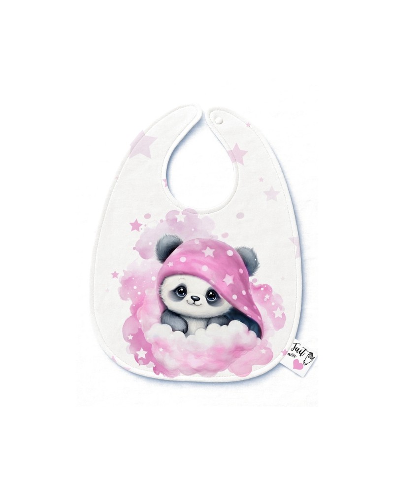 Panneau Bavoir Panda dans les nuages roses – pour Bavoir Bébé 3 à 12 mois – Tissu coton Oeko-Tex® a réaliser soi-même