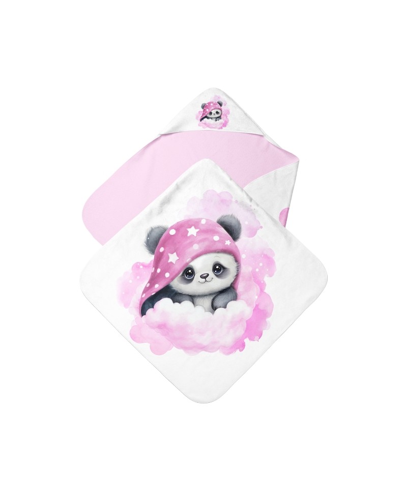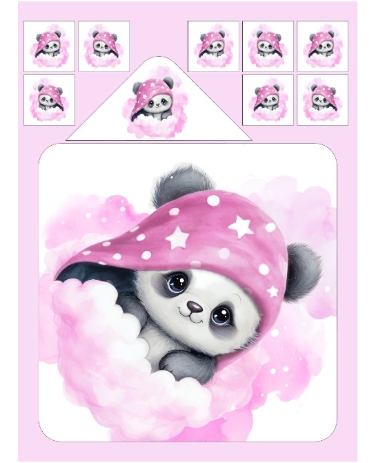 Coupon cape de bain Panda dans les Nuages Rose + 8 lingettes lavables – Oeko-Tex – kit couture facile, cadeau naissance