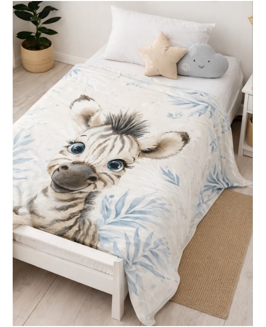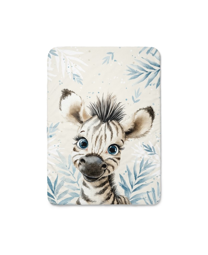 Coupon couverture Zèbre fond bleu – Oeko-Tex – 75x100, 100x150 ou 150x200 cm – couture facile, cadeau naissance