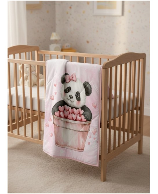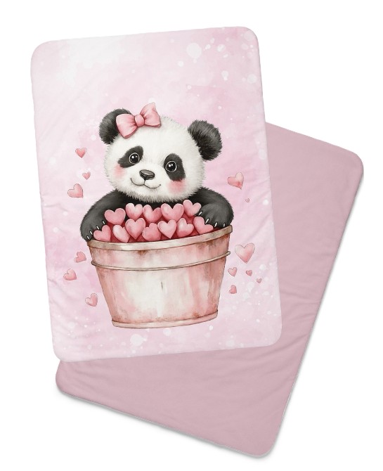 Coupon couverture Panda & Coeurs – Oeko-Tex – 75x100, 100x150 ou 150x200 cm – couture facile, cadeau naissance