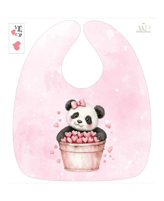 Panneau Bavoir Panda & Coeurs – pour Bavoir Bébé 3 à 12 mois – Tissu coton Oeko-Tex® a réaliser soi-même
