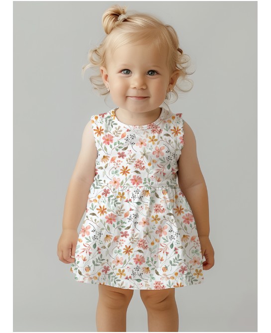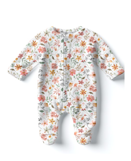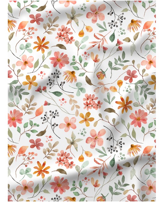 La palette pastel mêle corail tendre, pêche, jaune doux et verts sauge sur un fond clair, pour un rendu lumineux, élégant et intemporel, facile à associer. Le motif, équilibré et léger, convient aussi bien aux créations bébé et enfant qu’à la décoration ou aux accessoires raffinés.