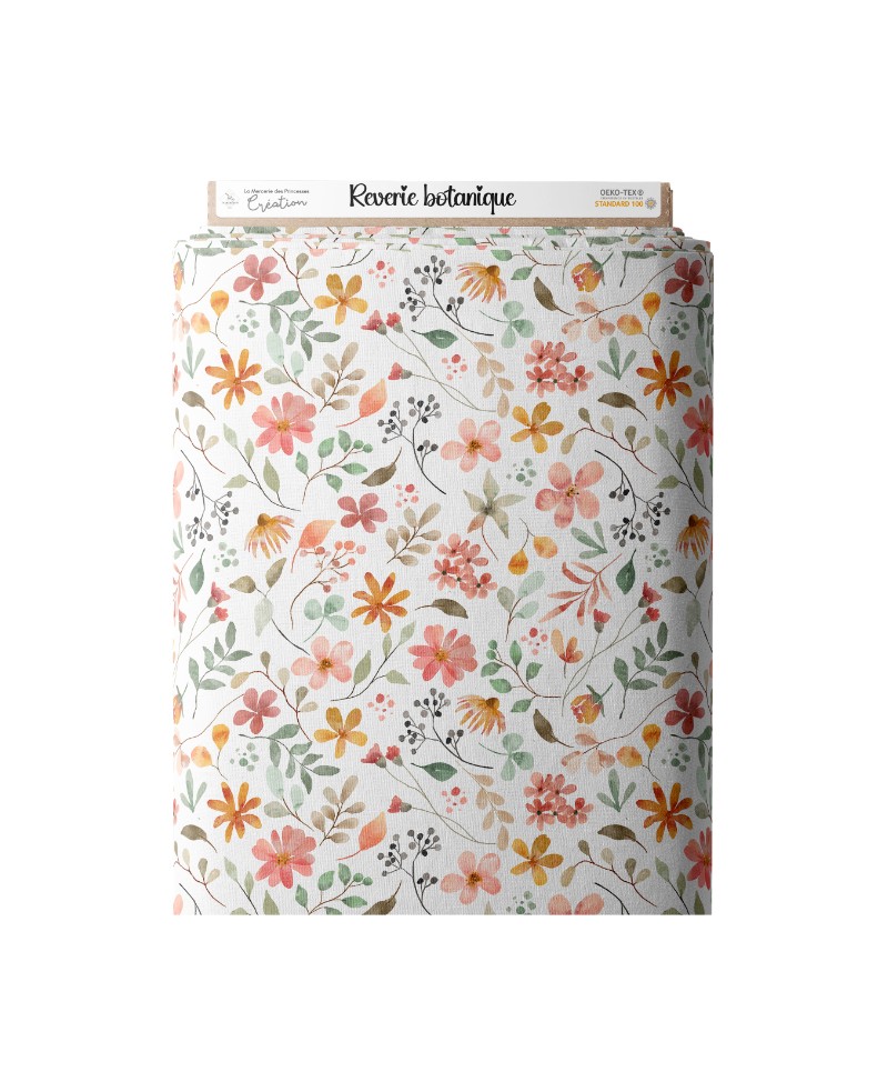 Tissu coton bébé “Rêverie Botanique” – Motif fleurs aquarelle - Certifié Oeko-Tex®