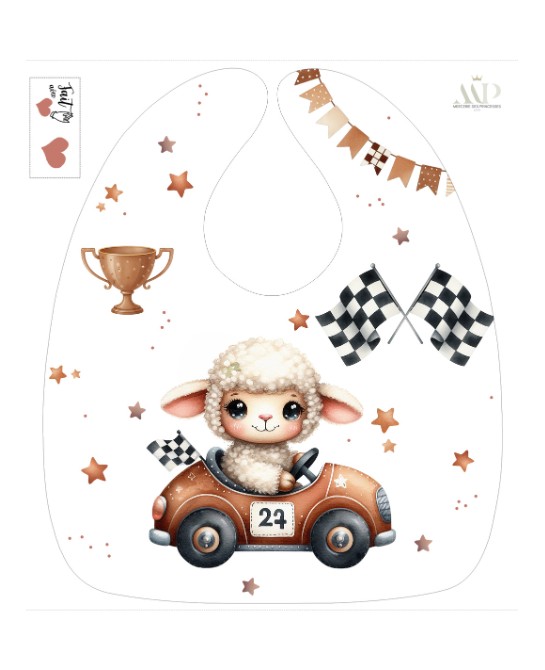 Panneau Bavoir Voiture De Course Mouton– pour Bavoir Bébé 3 à 12 mois – Tissu coton Oeko-Tex® a réaliser soi-même