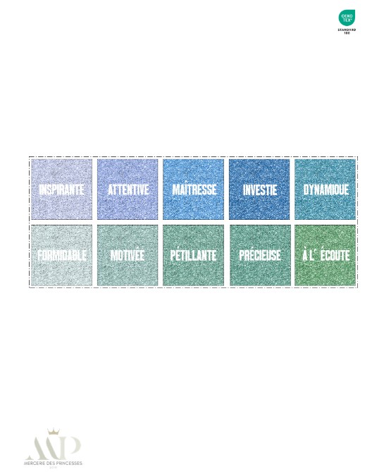 Panneau en coton premium certifié Oeko-Tex Standard 100, composé de carrés pailletés aux messages positifs et valorisants. Un design lumineux et inspirant, idéal pour ajouter une touche douce et motivante à votre routine beauté zéro déchet.