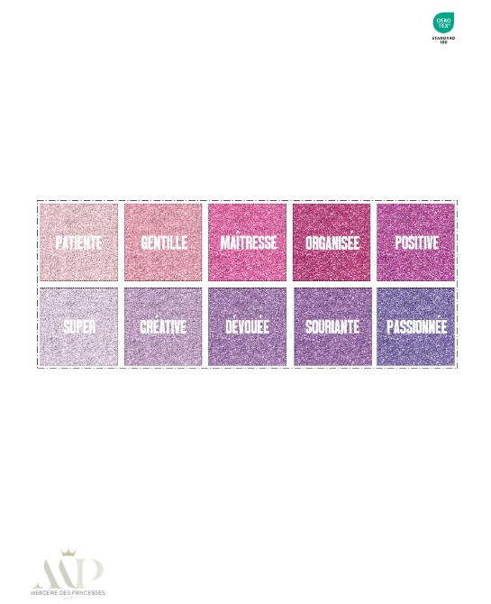 Panneau en coton premium certifié Oeko-Tex Standard 100, composé de carrés pailletés aux messages positifs et valorisants. Un design lumineux et inspirant, idéal pour ajouter une touche douce et motivante à votre routine beauté zéro déchet.