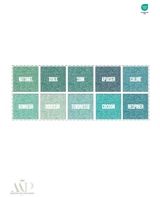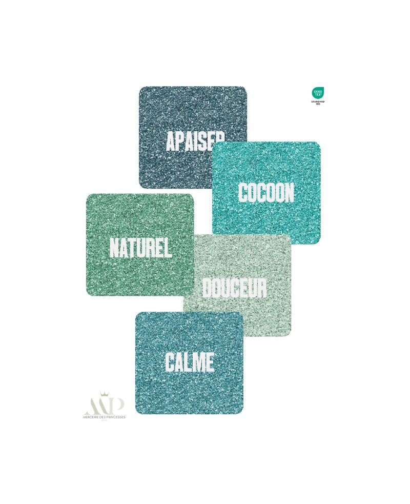 Panneau en coton premium certifié Oeko-Tex Standard 100, composé de carrés pailletés aux messages apaisants et naturels : soin, douceur, calme, respirer, nature. Un design lumineux et harmonieux, idéal pour accompagner une routine beauté plus douce, centrée sur le bien-être et l’essentiel.