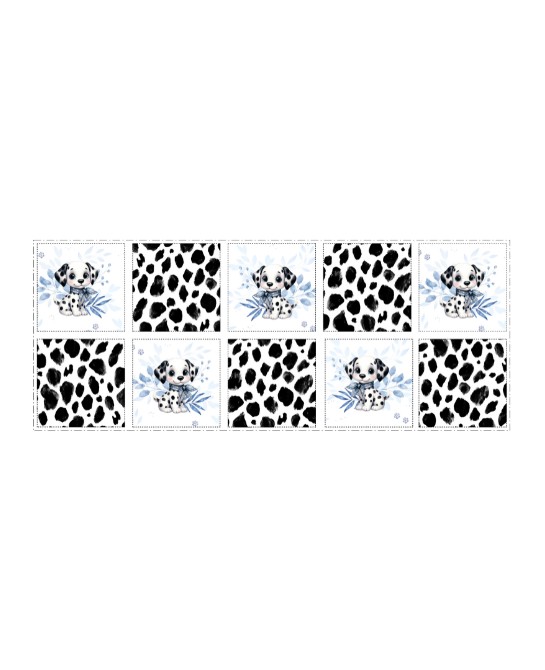 Chaque carré de 12 × 12 cm met en valeur un univers harmonieux autour du dalmatien, alternant adorables chiots et motifs de taches emblématiques pour un rendu à la fois doux et moderne.