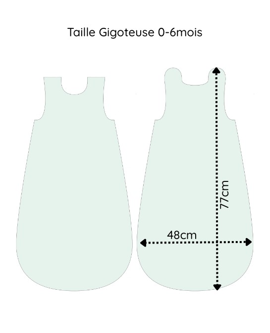 - Taille 0-6 mois : 75 cm (hauteur) x 48 cm (largeur)