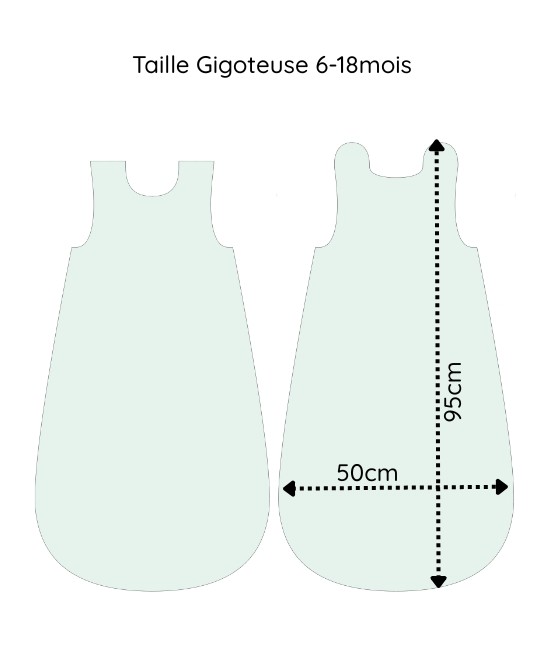 - Taille 6-18 mois : 95 cm (hauteur) x 50 cm (largeur)