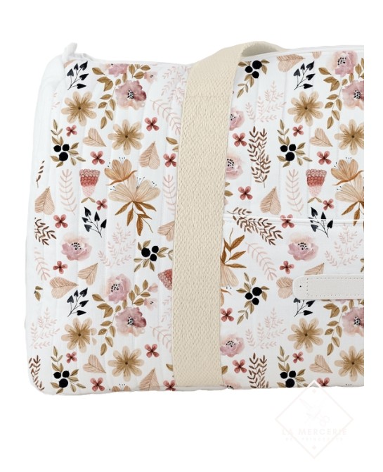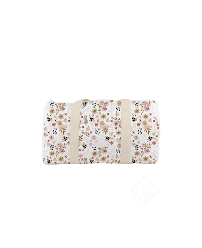 Créez un sac à langer ou sac de voyage unique et fleuri grâce à notre panneau de tissu “Fleurs Sauvages Roses”, une création douce et poétique signée La Mercerie des Princesses®.