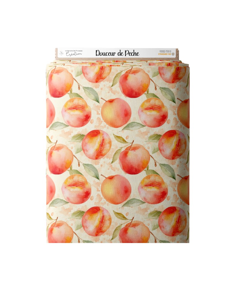 Tissu coton imprimé fruit Douceur De Pêche - Certifié Oeko-Tex®