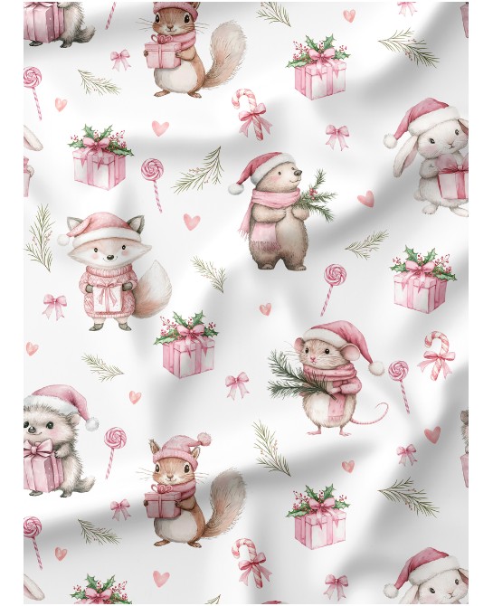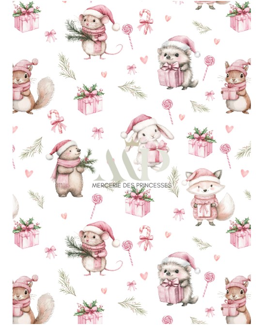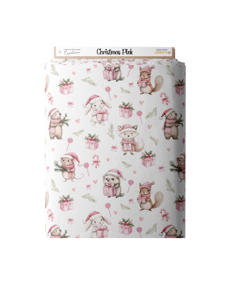 ✨ Plongez dans la magie de Noël avec notre tissu Christmas Pink, un motif tendre et féérique qui enchantera petits et grands. Ses adorables animaux vêtus de bonnets et d’écharpes roses, entourés de cadeaux, sucres d’orge et branchages, apportent douceur et poésie à vos créations.