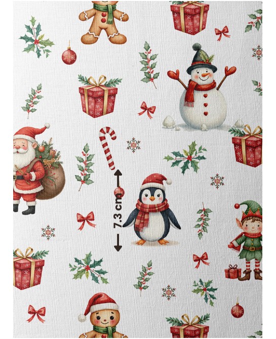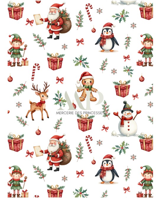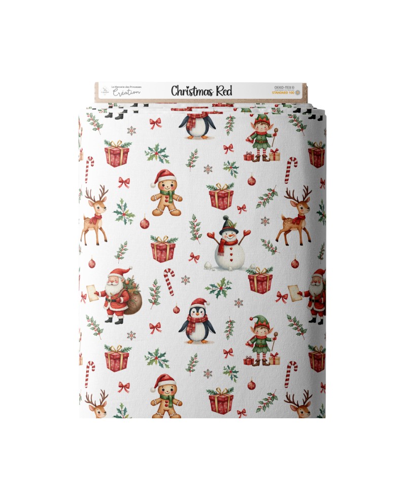 ✨ Plongez dans la féérie des fêtes avec notre tissu Christmas Red, un motif joyeux et enchanteur qui séduira petits et grands. Le Père Noël, ses rennes, des bonhommes de neige, lutins, pingouins et biscuits pain d’épices s’invitent aux côtés de cadeaux, houx et cannes à sucre, pour un esprit festif et chaleureux.